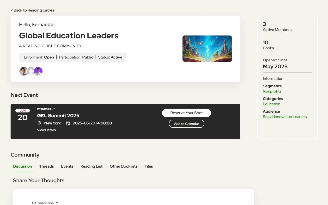 Explore thematic and author-led circles designed for depth, connection, and contribution.